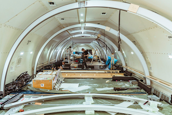 Für den technischen Ausbau wurden mehr als 7,5 km Kabel verlegt. 78.000 LEDs in 165 Video-LED-Modulen sowie zehn 13.000 ANSI Lumen Projektoren sorgen im Innenraum der Boeing für eine Vorstellung, die alle Sinne anspricht. Über 120 Messebau-Spezialisten von Lufthansa Cargo und der BMW Group waren bei der Realisierung des Projektes im Einsatz.