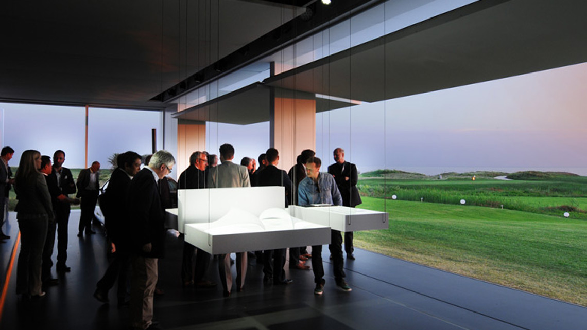 Ein geschlossenen Kinosaal mit großen Klapptoren wandelt sich zum offenen Pavillon mit grandioser Ausicht auf das Meer: punktgenau zum Sonnenuntergang.
