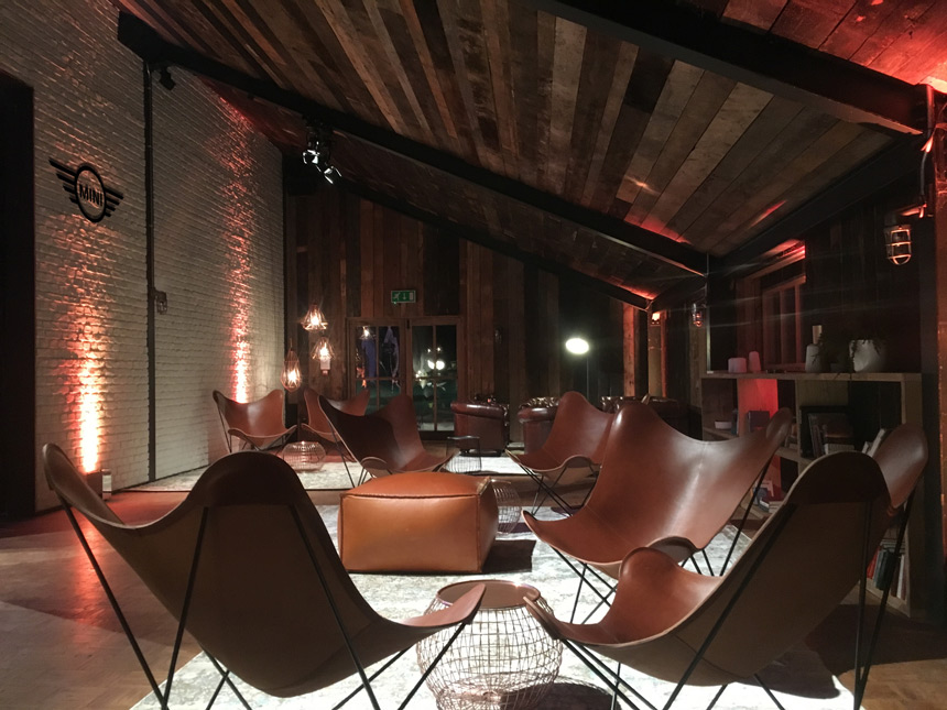 Nach der Pressekonferenz öffnete sich das große Holztor und liess den Abend für die Gäste in der dahinterliegende Lounge bei echtem knisterndem Kaminfeuer ausklingen.